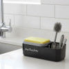 Built-in caddy holds sponges or scrubbers neatly in one place.