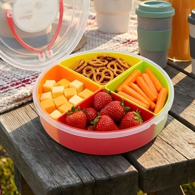 Four divided compartments provide organized storage for small items, tools, accessories, and stationery
