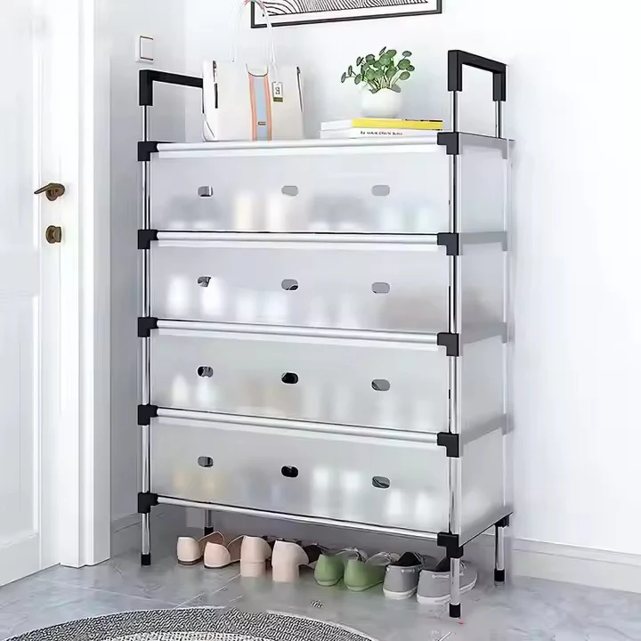 Durable 5-layer shoe rack with dust-proof design for clean and organized footwear storage.