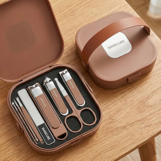 Complete 7-piece manicure and pedicure set for clean and hygienic nail care.