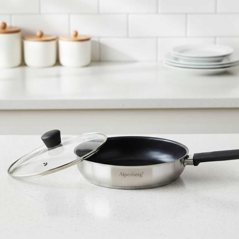 Alpenberg 24cm Stainless Steel Fry Pan with Glass Lid — Non-Stick Cookware