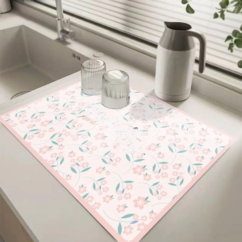 Anti-Slip Dish Drying/Dining Table Mat-Water Absorbent Floral Pattern Design