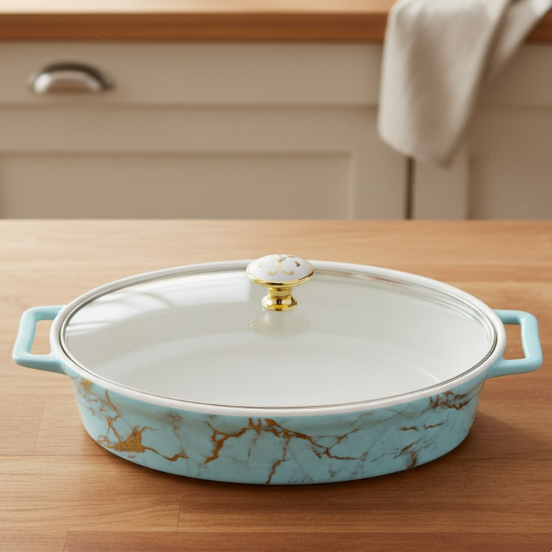 Package Includes: 1 × Oval Ceramic Dish with Glass Lid