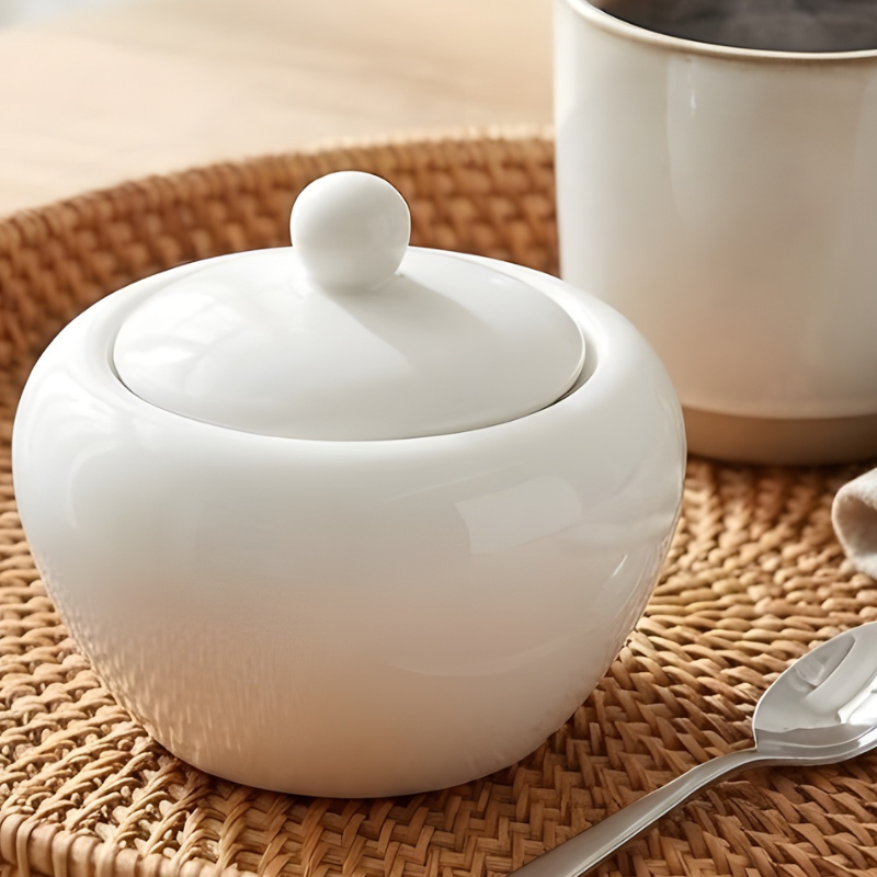 Elegant ceramic sugar pot, ideal for storing sugar, tea, coffee granules, or other dry kitchen essentials.