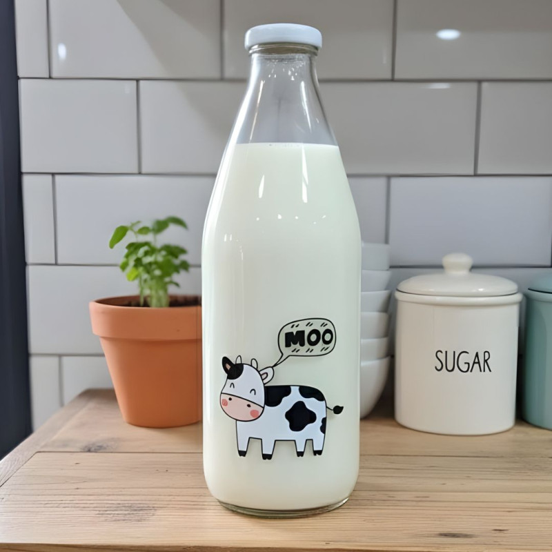 Stylish milk bottle featuring a cute cow graphic design — perfect for daily hydration.