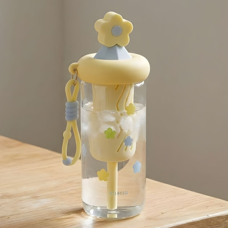 Glass Sipper Cup Stylish Drinking Glass with Straw