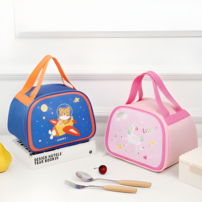 Insulated reusable lunch bag designed to keep food and drinks cool or warm.