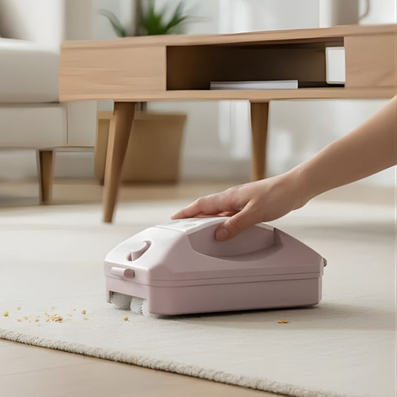 Compact manual carpet cleaner designed for efficient dirt and debris removal