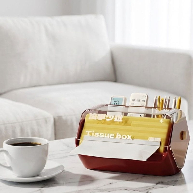 Functions: Tissue holder, remote control organizer, small item storage