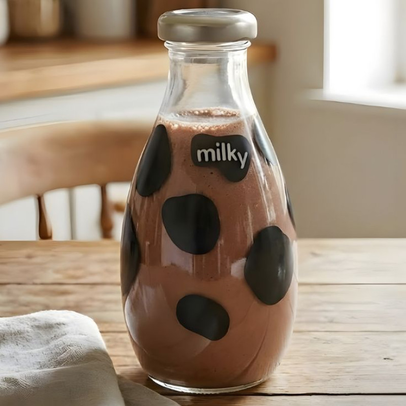 Bottle capacity approximately one liter suitable for storing milk juices and cold beverages like water or smoothies