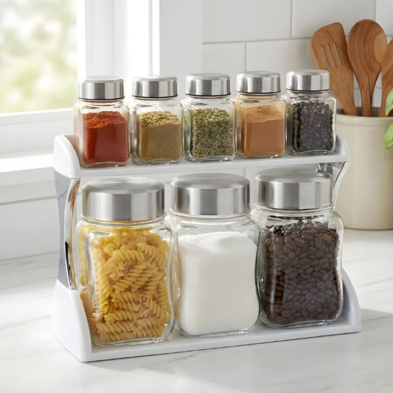 Includes a mix of small and large jars for convenient spice management